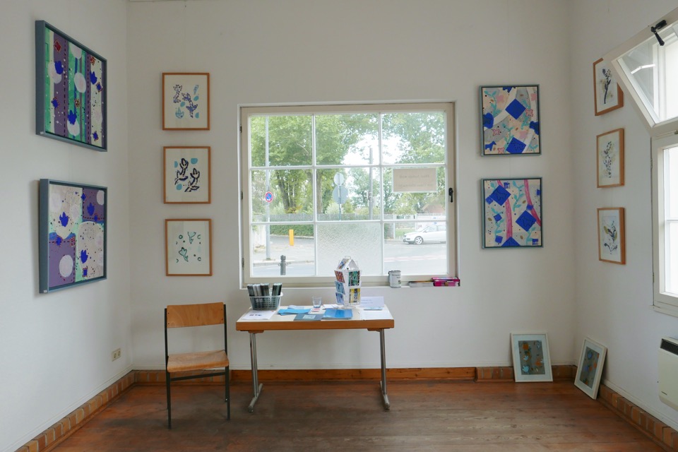 „Ich beschäftige mich seit langem mit dem Bereich der Malerei und Grafik. Insbesondere Form und Farbe stehen dabei im Mittelpunkt. Ich arbeite relativ fließend aus dem Bauch heraus, trete zwischendurch aber zurück und betrachte meine Ergebnisse. Meine Bilder werden, auf dem Boden liegend, bearbeitet. Am Anfang steht immer die Bild- und Farbfläche, weitere "Spuren" ergeben sich im Prozess - "Flow".”